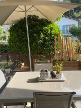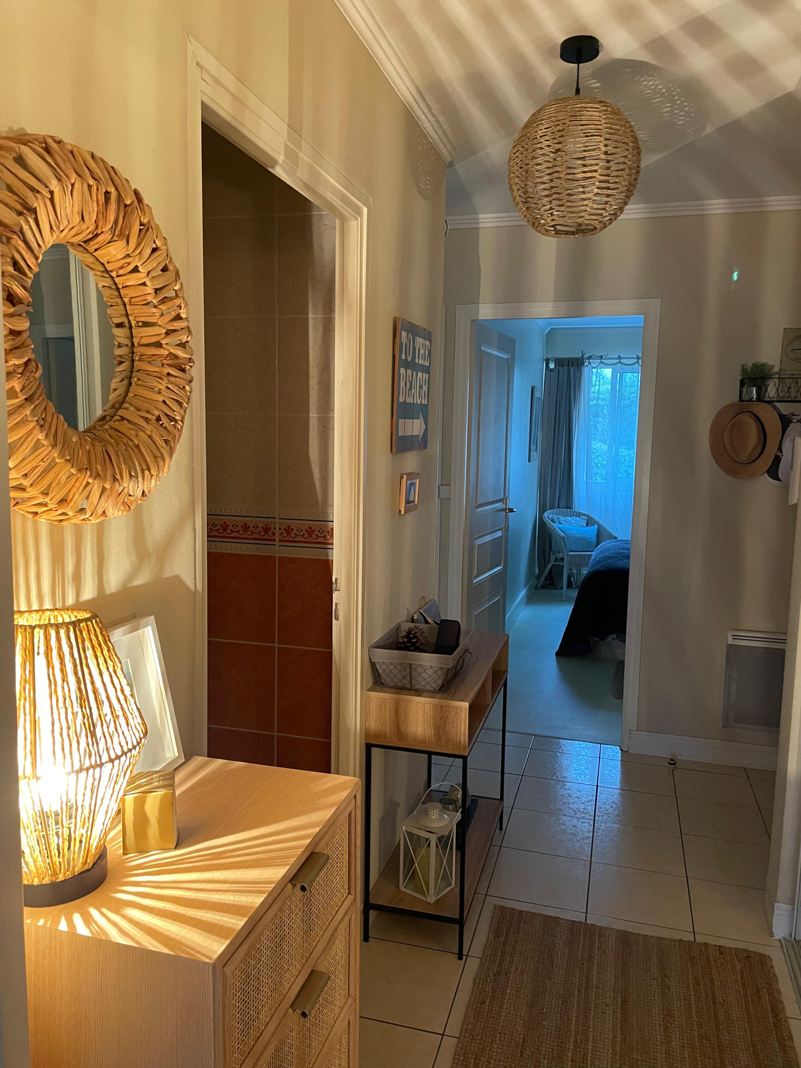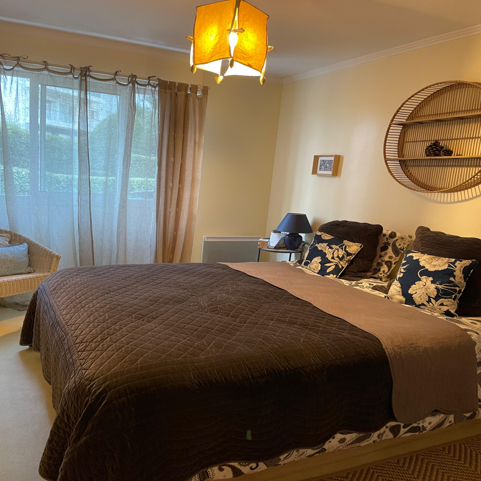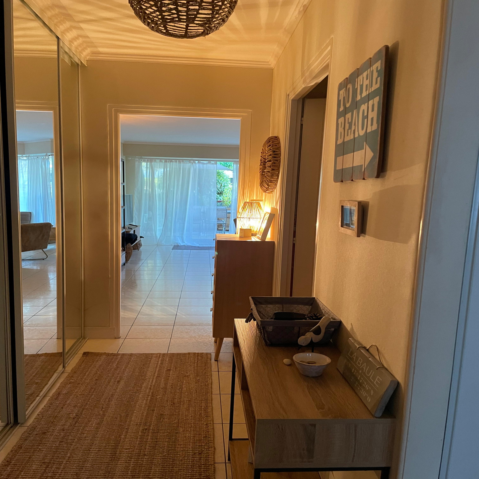Bel Appartement en rez-de-jardin de 70m2. Entrée avec placards , beau séjour sur terrasse SUD de 12m2 , cuisine ouverte équipée ,2 chambres, 1 SDD . Parking couvert , parking extérieur . Emplacement privilégié , Avenue très calme , proximité commerces , et plages .