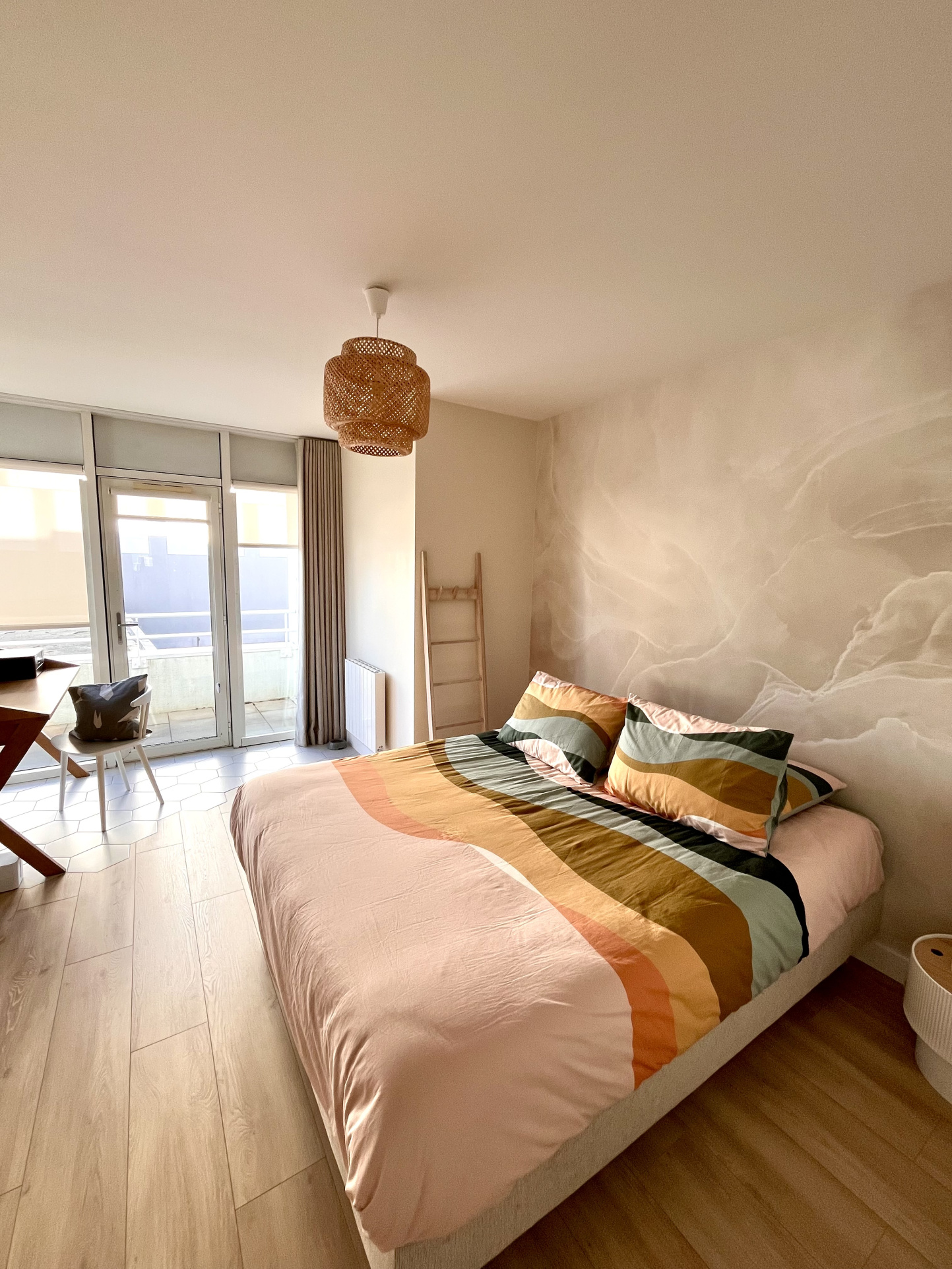 Bel appartement de 67 m2 entièrement rénové. Séjour double avec grande terrasse plein SUD, cuisine ouverte entièrement équipée. Deux chambres avec terrasse ,sdd, coin bureau. Hauteur sous plafond , prestations de grande qualité . Parking exterieur sécurisé et couvert ,cave